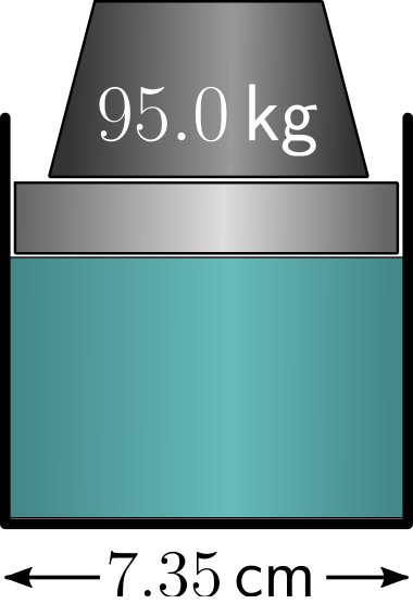 A mass of 95.0kg is supported by a piston over oil in a circular cylinder with inside diameter of d=7.35cm. What is the oil pressure at the piston?